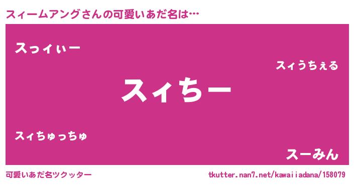 | 意味不明あだ名 | 『スィームアングフォーエバー』 |