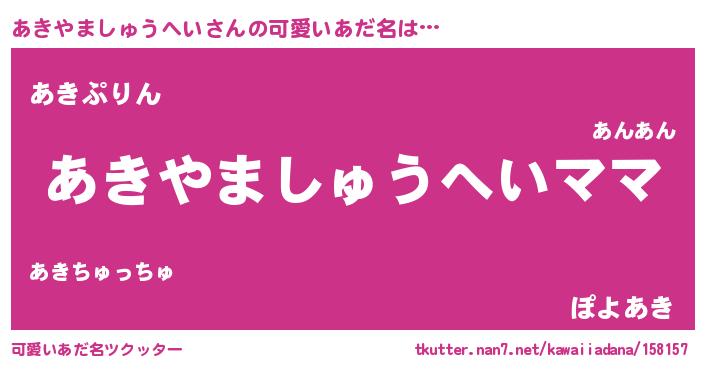 | 意味不明あだ名 | 『永久保存あきやましゅうへい』 |