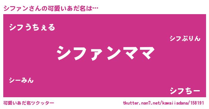 | 意味不明あだ名 | 『永久保存シファン』『自称シファン』 |