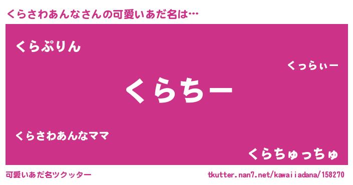 | 女子向けラノベタイトル風あだ名 | 『くらさわあんなの婚約者』 |