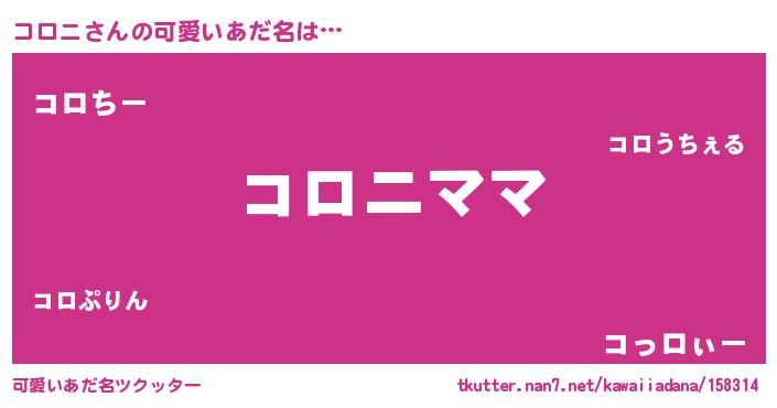 | 意味不明あだ名 | 『永久保存コロニ』『コロニフォーエバー』 |