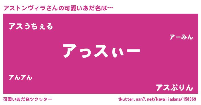| 女子向けラノベタイトル風あだ名 | 『アストンヴィラ様がみてる』 |