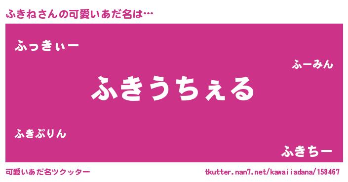 | 意味不明あだ名 | 『自称ふきね』『とにかく怪しいふきね』 |