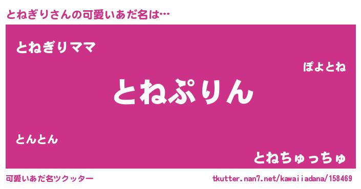 | 女子向けラノベタイトル風あだ名 | 『とねぎりの玉の輿計画!』 |