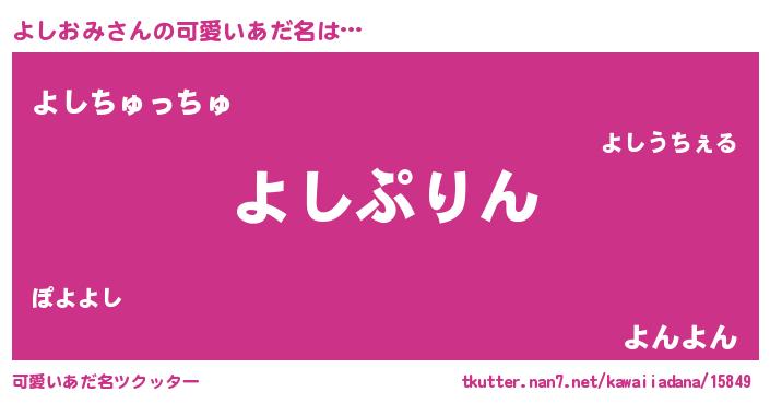 | 男性向けラノベタイトル風あだ名 | 『よしおみ~年齢イコール彼女いない歴の魔法使い~』 |