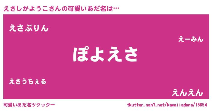 | 恥ずかしいあだ名 | 『プリティーえさしかようこ』『えさちん』 |