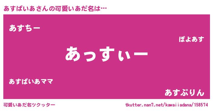 | 意味不明あだ名 | 『とにかく怪しいあすぱいあ』 |