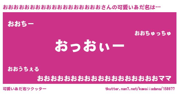| 女子向けラノベタイトル風あだ名 | 『おおおおおおおおおおおおおおおおおおの卵を拾いまして』 |