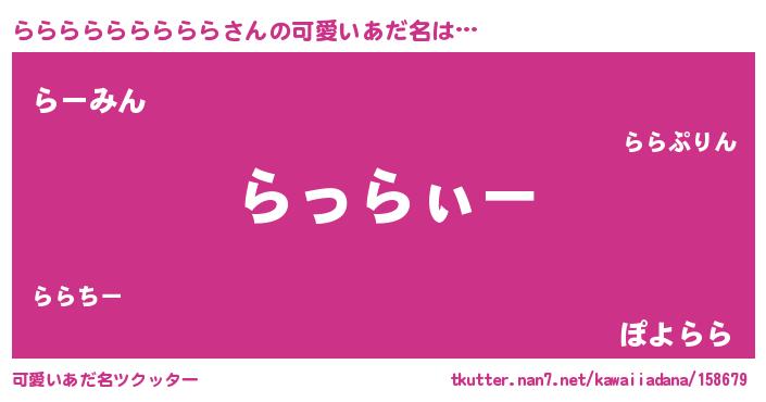 | 男性向けラノベタイトル風あだ名 | 『らららららららららの嫁は女の子じゃないと思った?』 |