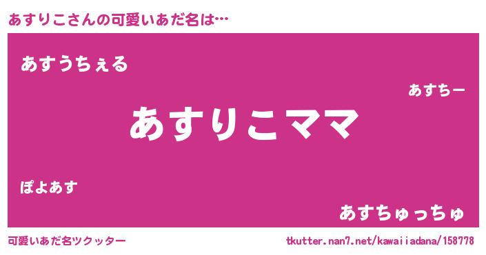 | 意味不明あだ名 | 『永久保存あすりこ』『自称あすりこ』 |