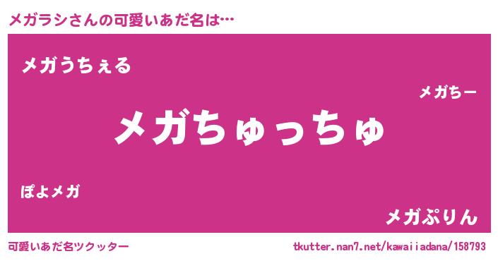 | ヘコむあだ名 | 『牛乳』『メガぷりん』『メガにー』 |