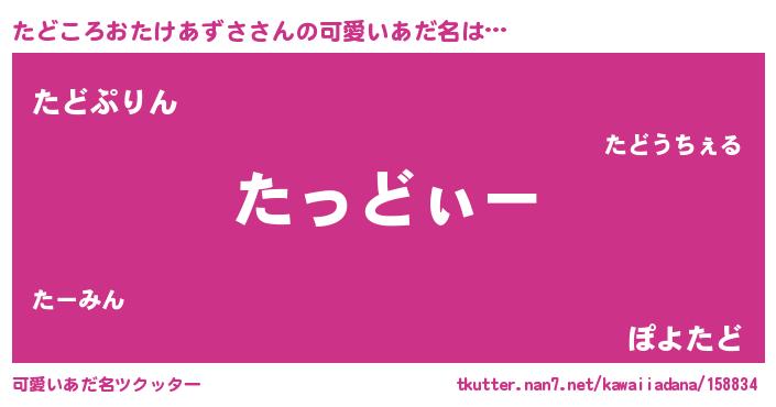 | 男性向けラノベタイトル風あだ名 | 『たどころおたけあずさの嫁は女の子じゃないと思った?』 |