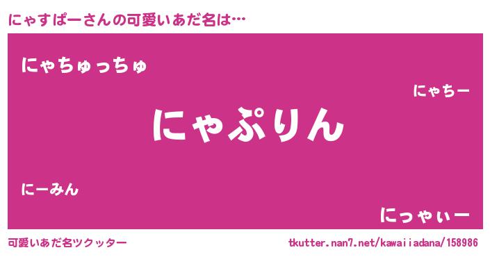 | 意味不明あだ名 | 『めかぶ科にゃすぱー属』 |