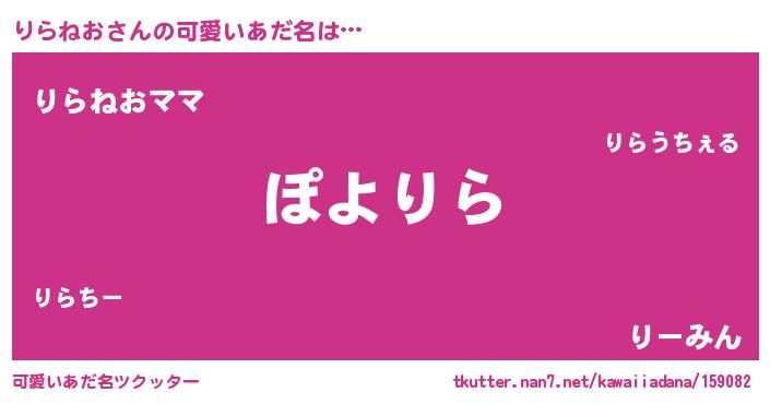 | ヘコむあだ名 | 『りらねお(遠い目)』『酢こんぶ』 |