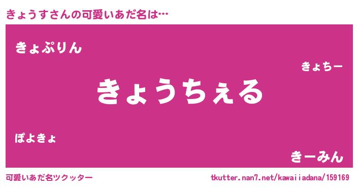 | 意味不明あだ名 | 『自称きょうす』『なめこ科きょうす属』 |