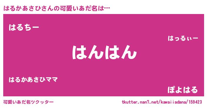 | 恥ずかしいあだ名 | 『プリティーはるかあさひ』『はるっちょ』 |