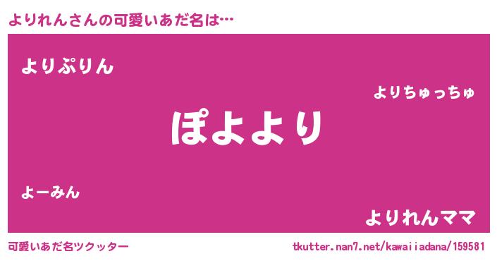 | ヘコむあだ名 | 『よりれん(小並感)』『よりっふぃ~』 |