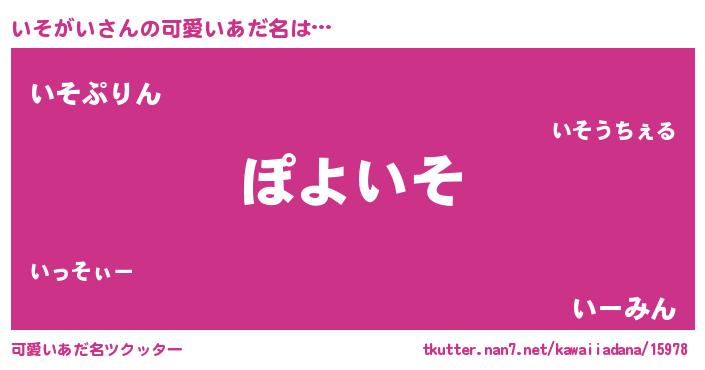 | 意味不明あだ名 | 『住所不定無職いそがい(5歳)』 |