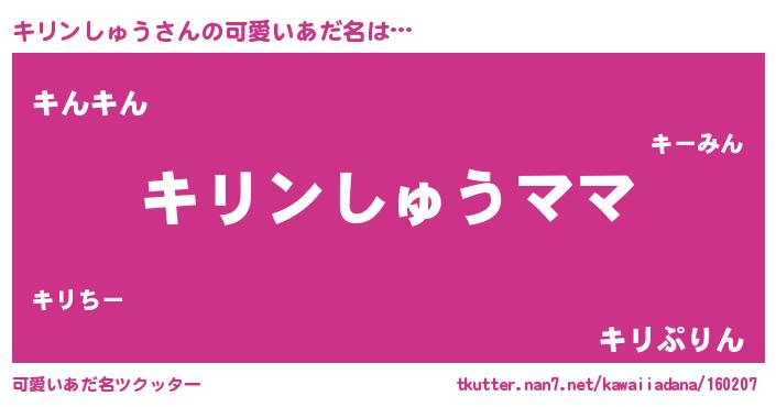 | 恥ずかしいあだ名 | 『キリちん』『プリティーキリンしゅう』 |