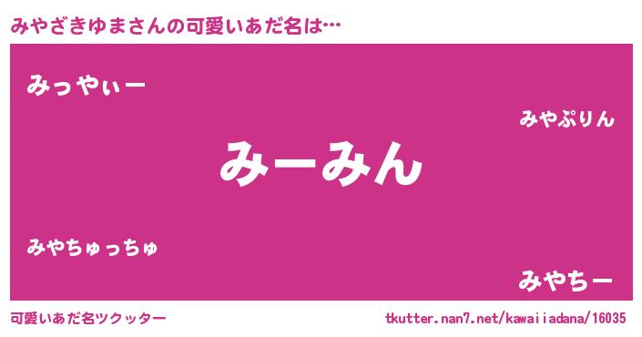 | 意味不明あだ名 | 『とにかく怪しいみやざきゆま』 |