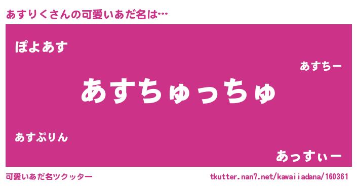 | ヘコむあだ名 | 『あすを』『つくし』『あすにゅー』 |