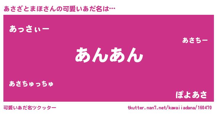 | ポケモン風あだ名 | 『アサチュウ』『ヒアサザトマホ』 |
