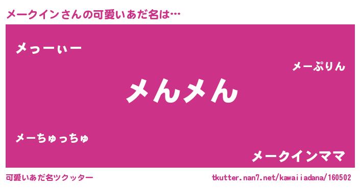 | ヒーロー風カッコイイあだ名 | 『スーパーメークイン』『銀牙騎士メー』 |