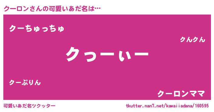 | ヘコむあだ名 | 『クーぷりん』『クーロン(苦笑)』 |