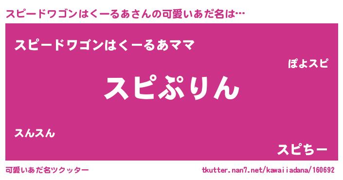 | 男性向けラノベタイトル風あだ名 | 『スピードワゴンハクールアスレイヤー』 |