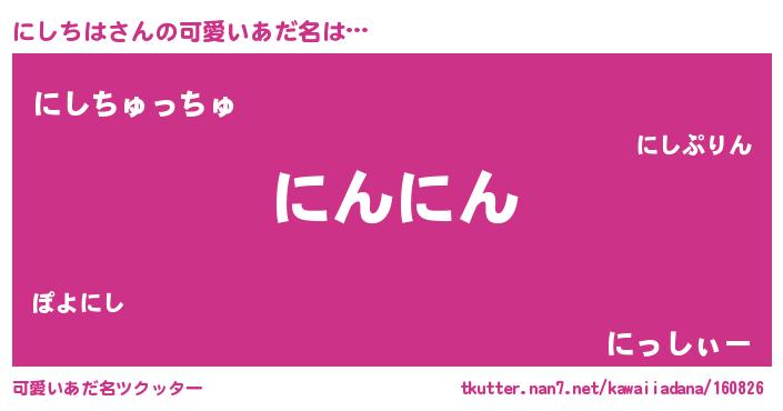 | ポケモン風あだ名 | 『ニシチュウ』『ニックウザ』 |