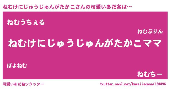| 意味不明あだ名 | 『永久保存ねむけにじゅうじゅんがたかこ』 |