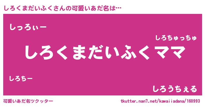 | ヘコむあだ名 | 『しろくまだいふく(震え声)』『しろを』 |