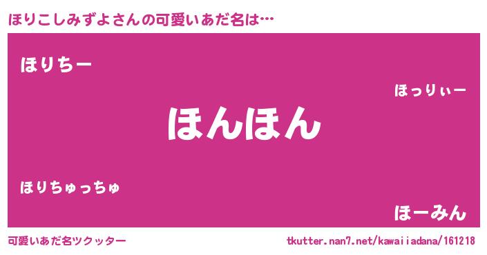 | 恥ずかしいあだ名 | 『プリティーほりこしみずよ』『ほりちん』 |