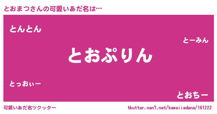 | ヒーロー風カッコイイあだ名 | 『スーパートオマツ』『暗黒騎士トオ』 |