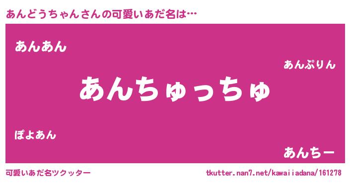 | 2回繰り返すあだ名 | 『ぶにゅぶにゅ』『あんあん』 |