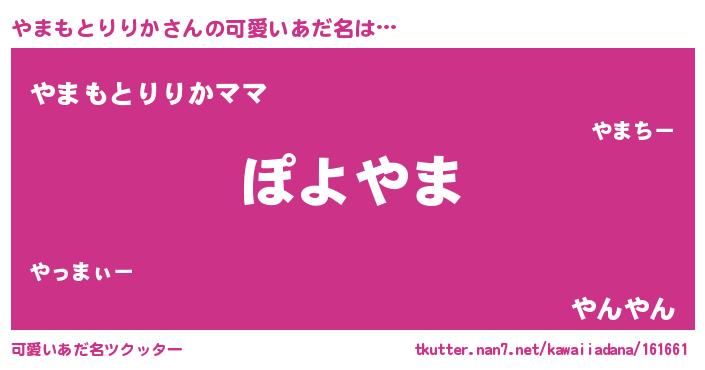 | ヘコむあだ名 | 『やまもとりりか(苦笑)』『やまにゅー』 |