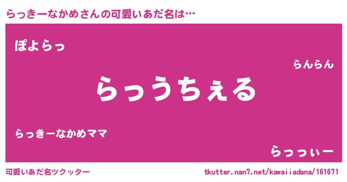 | 女子向けラノベタイトル風あだ名 | 『らっきーなかめなんてお断りですっ。』 |