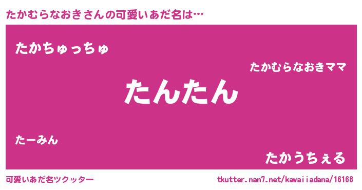 | 恥ずかしいあだ名 | 『プリティーたかむらなおき』『たかちん』 |