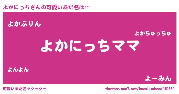 | ヘコむあだ名 | 『よかにっち(苦笑)』『よかっふぃ~』 |