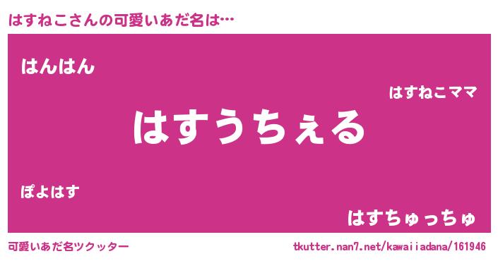 | 男性向けラノベタイトル風あだ名 | 『Re:はすねこから始める異世界生活』 |