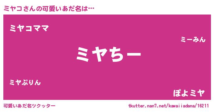 | ヘコむあだ名 | 『牛乳』『ミヤコ(爆)』『ミヤを』 |