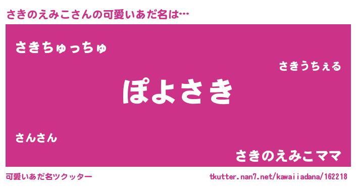 | ヘコむあだ名 | 『さきのえみこ(震え声)』『さきもー』 |