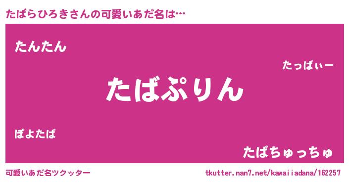 | 恥ずかしいあだ名 | 『プリティーたばらひろき』『たばっちょ』 |