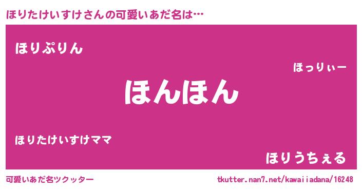 | 恥ずかしいあだ名 | 『プリティーほりたけいすけ』『ほりちん』 |