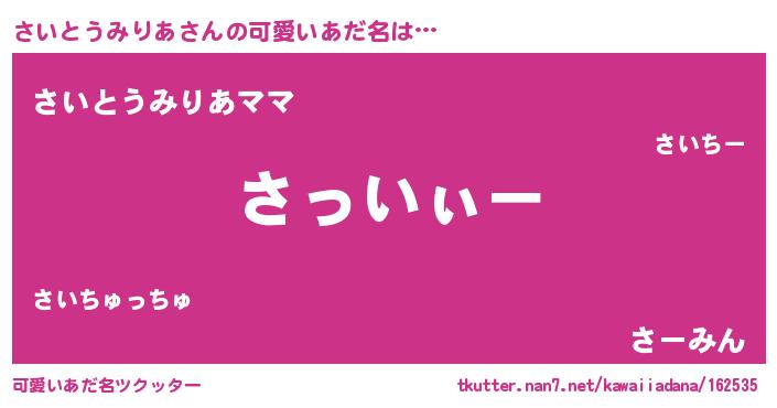 | ヘコむあだ名 | 『さいっちょ』『さいとうみりあ(震え声)』 |