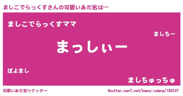 | 男性向けラノベタイトル風あだ名 | 『ましこでらっくすの嫁は女の子じゃないと思った?』 |