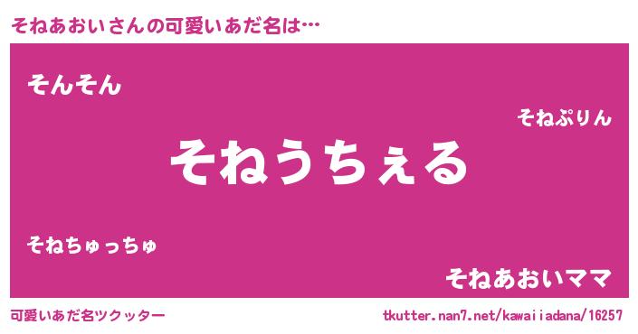 | 恥ずかしいあだ名 | 『ソネアオイデラックス』『そねちん』 |