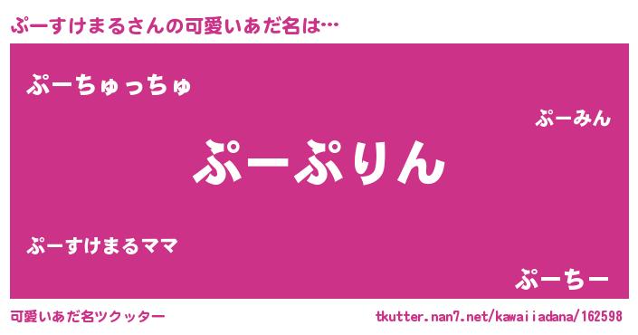 | 男性向けラノベタイトル風あだ名 | 『ぷーすけまる~年齢イコール彼女いない歴の魔法使い~』 |