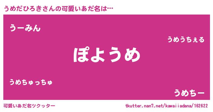 | ヒーロー風カッコイイあだ名 | 『仮面ウメダー』『究極戦士ウメダヒロキ』 |