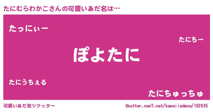 | 男性向けラノベタイトル風あだ名 | 『この素晴らしい世界にたにむらわかこを!』 |